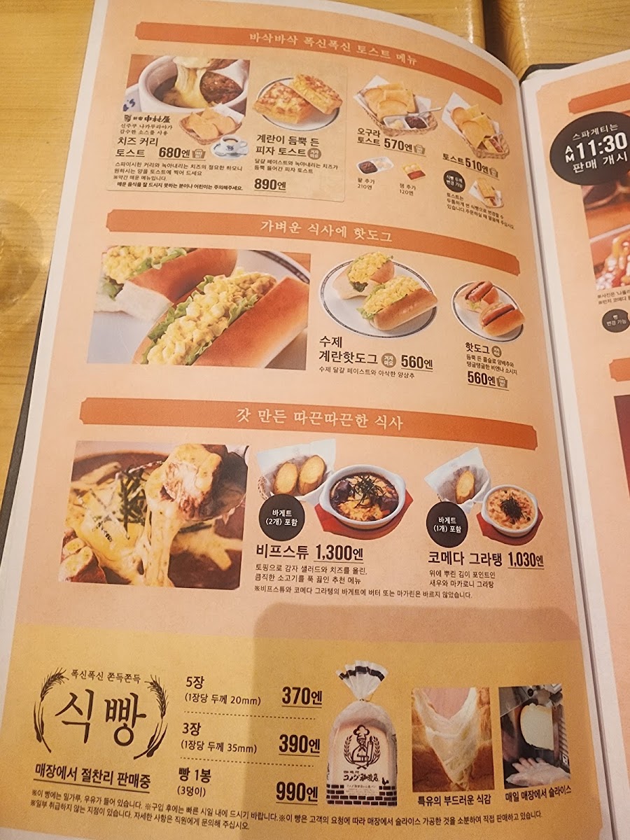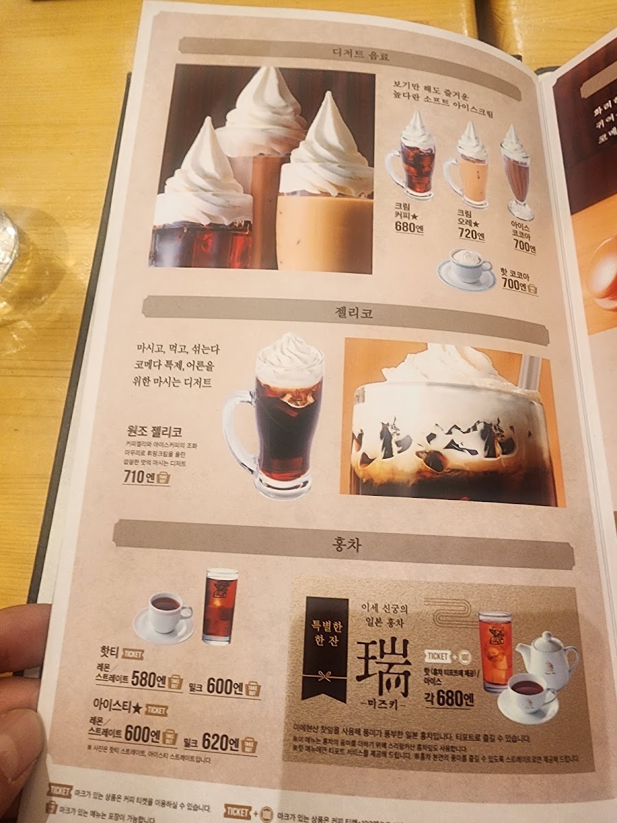 The menu at Komeda's Coffee Odorinishi 6-Chome offers a variety of options suitable for breakfast, coffee breaks, and light meals throughout the day. Visitors can find a selection of coffee beverages including blended coffee, cream coffee, iced au lait, and hot milk in generous sizes.